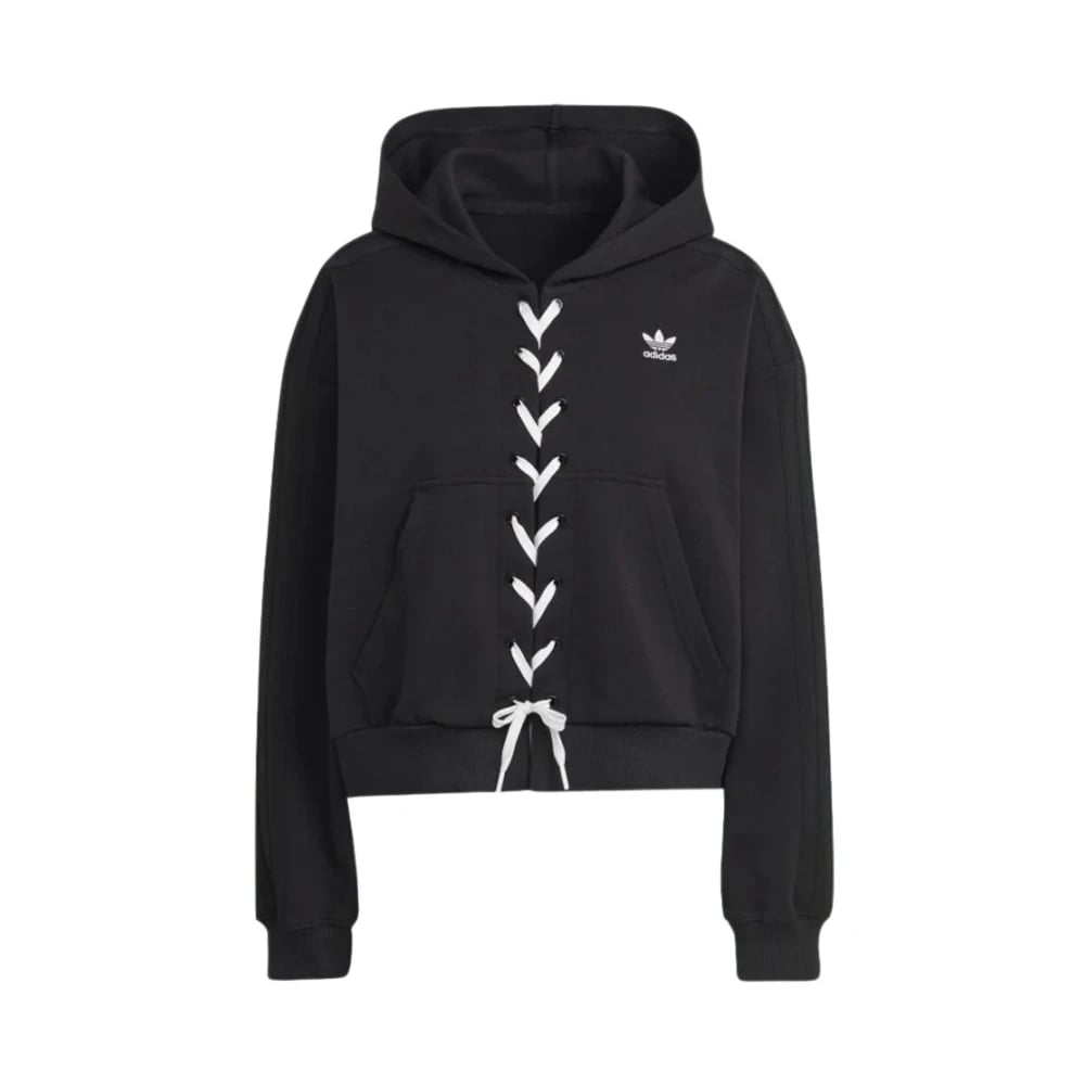 Adidas, Sweatshirts & Hoodies , Dam, S, Bomull, Cropped Hoodie med spetsdetaljer