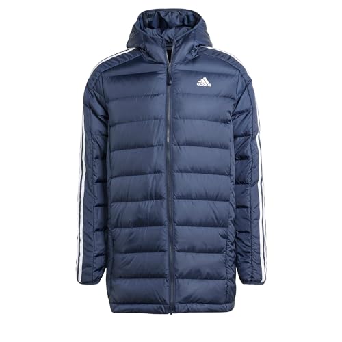 adidas För Män Essentials 3-Stripes Light Down Hooded Parka, Legend Ink, M