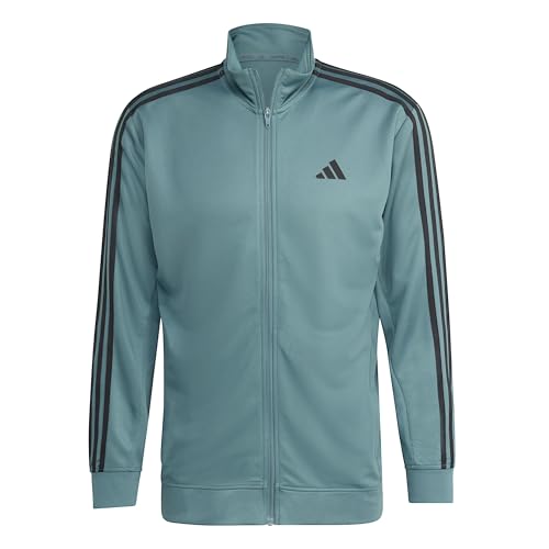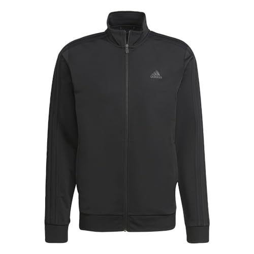 adidas Men's Standard Essentials Warm-Up 3-Stripes Track Top, Black/Black, Medium