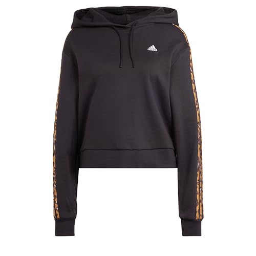 adidas Kvinnor Essentials 3-Stripes Animal Print Relaxed Hoodie, Black/Magic Beige, XS