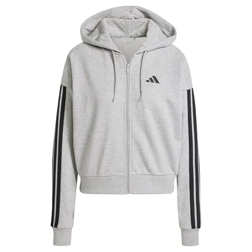 adidas Kvinnor ESSENTIALS 3-STRIPES FRENCH TERRY FULL ZIP HOODIE, Medium Grey Heather/Black, XS