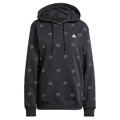 adidas Kvinnor Essentials Monogram Regular Fleece Graphic Hoodie, black, S