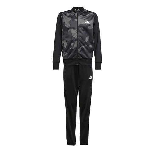 adidas Uniseks - dzieci Seasonal Essential Junior Camouflage Tricot 3 Stripes All Over Printed Tracksuit, black/white, 9-10 Years