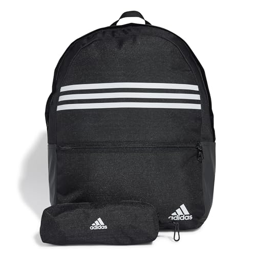 adidas unisex klassisk horisontell ryggsäck med 3 ränder, Svart,vit, 27, ryggsäck