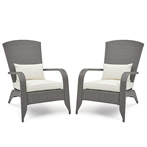 Mondeer 2 x Adirondack-stol, fåtöljer, PE-rotting, groda, stol, solstolar, kudde för vilstol, trädgårdsmöbler, set, gräsmatta, trädgård, pool, grå