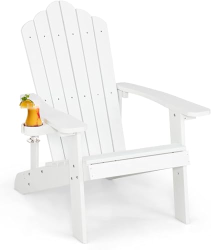 FANTASK Adirondack-stol med mugghållare, väderbeständig trädgårdsstol, trädgårdsfåtölj av plast