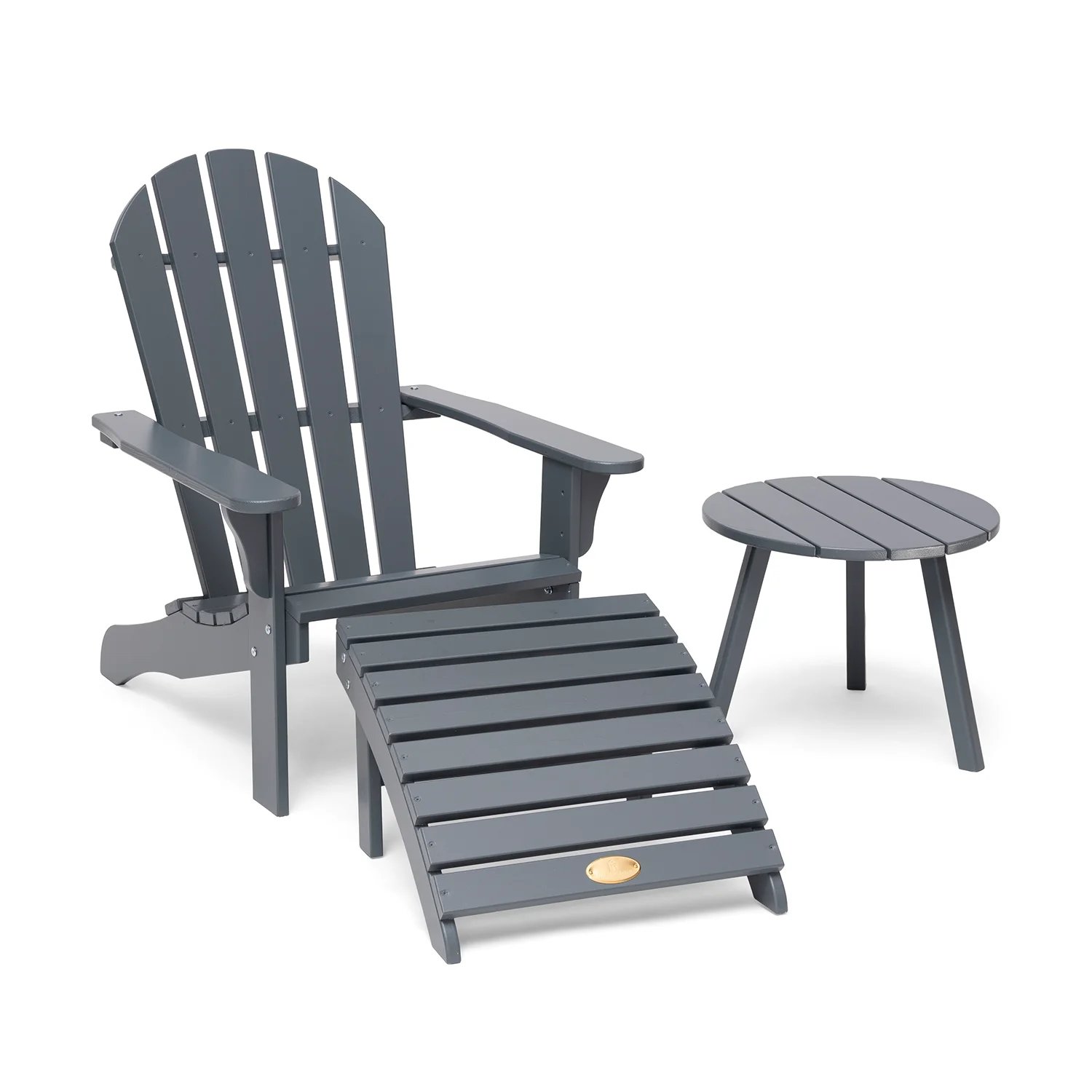 Tennessee adirondackstol stålgrå – med fotpall & sidobord