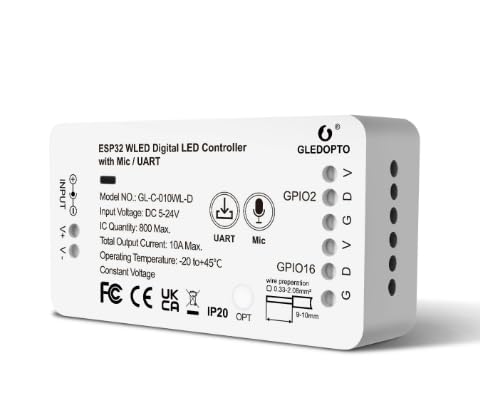 Wled Controller ESP32, GL-C-010WL-D WLED-styrenhet, digital remsa ljuskontroll med MIC-funktion, Esp32 adressable remsa med mikrofon nedladdning WS2811 2812B 2813 2815 GS8208 SM16703PSK6812 TM1814, 5