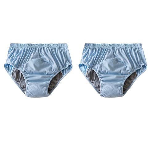 Reusable Cotton Incontinences Underwear For Elderly Leakproof Water Resistant Washable Adult Cloth Diaper Pant Briefs(Light blue,Large)