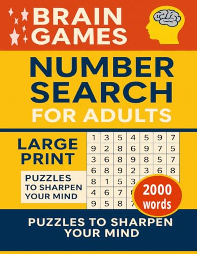 Brain Games 2000 Number: 100 Puzzles To Sharpen Your Mind Large Print For Adult + Seniors 25 solutions 4 Per Page
