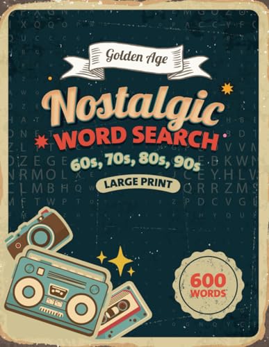 Nostalgic Word Search Book Large Print: Funny Wordfind Puzzle Games About the Golden Age 60s, 70s, 80s & 90s for Adult & Seniors with 600 words
