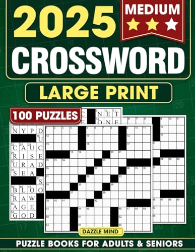 Medium Crossword Puzzle Books For Adults and Seniors: 100 Brain Memory Games Puzzles for Adult, Logic Word Find Activity for Elderly Women Men