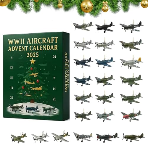Generic WWII Aircraft Advent Calender 2025, 24 Days Christmas Countdown with Mini Warbirds, World War II Fighter Jets Ornament, Fighter Countdown Surprise Gifts for History Buffs Airplane Lovers