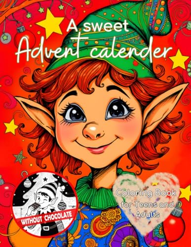 A sweet Advent calender without any chocolate! Advent calendar coloring book for teens and adults.: 24 Christmas coloring pages with cheerful elves, ... and more. To color from December 1st to 24th.