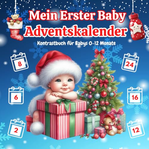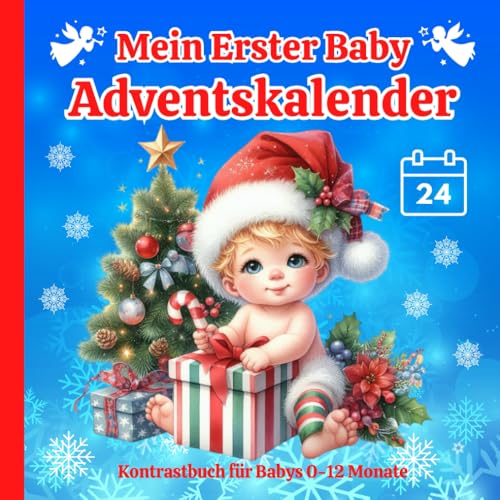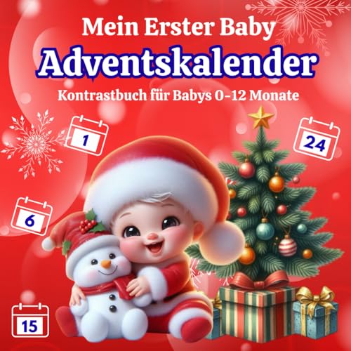Mein erster Baby Adventskalender: Kontrastbuch für Babys | Weihnachten Buch für Kinder von 0-12 Monaten | 24 Weihnachtsbilder zur Stimulation der Sehkraft von Neugeborene