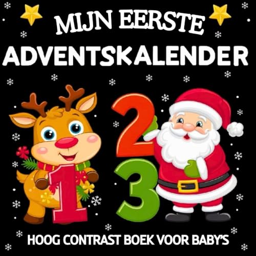 Mijn Eerste Adventskalender Hoog Contrast Boek voor Baby: Zwart en wit Afbeeldingen over Kerstmis voor Visuele Stimulatie bij Pasgeborenen | Cadeau voor Kinderen van 0-12 Maanden