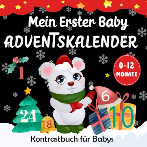 Adventskalender Baby - Kontrastbuch für Babys von 0-12 Monaten mit 24 weihnachtlichen Kontrastbildern