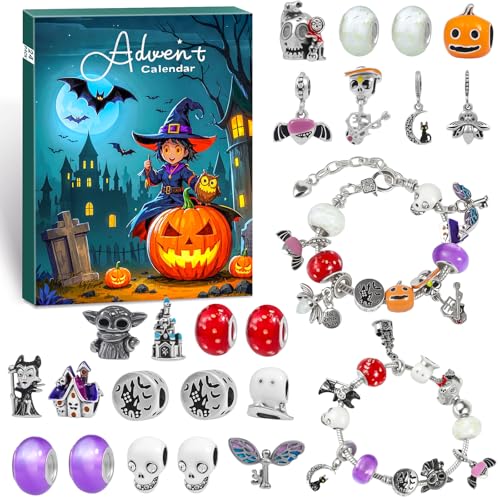 Halloween-adventskalender för barn 2025, DIY-armband med pärlor som lyser i mörkret, 24-dagars nedräkningskalender för barn, Halloweenpresenter för pojkar och flickor