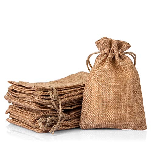 Naler Presentpåsar i jute, påsar med dragsko i säckväv, för fest, jul, adventskalender, pyssel, bröllopsgåva, present, 10 x 14 cm, kaffe, 24 st