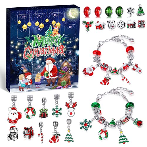 Julkalender, gör-det-själv 24 dagar jul nedräkningskalender unik berlock armband adventskalender, gör-det-själv adventskalender smycken för barn jul födelsedagspresenter