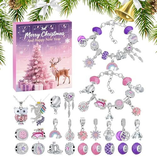 Smycken adventskalender 2025, julkalender fyllning armband smycken pyssel, adventskalender flickor med 24 överraskningar charm armband, julklapp barn 5 6 7 8 9 10 11 12 år