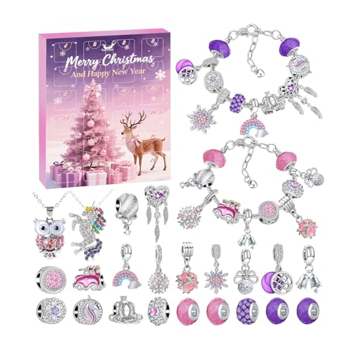 Viosmut Adventskalender 2025, barn, flickor julkalender, 24 bitar, armband, smycken, pyssel, presenter 5–12 år, charm, armband-kit, jul, present flicka, 5 6 7 8 9 10 11 12 år