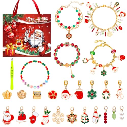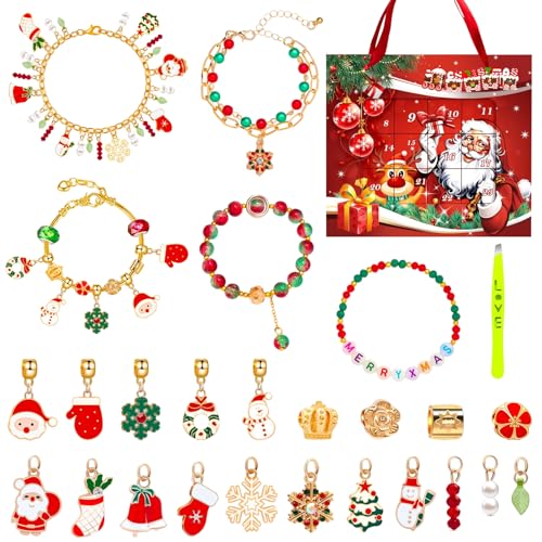 Adventskalender flickor smycken 2024, julkalender smycken gåva för barn tonåringar kvinnor, 24 fyllning adventskalender smycken pyssel flickor charm armband kit jul gåvor
