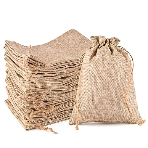 MAOOY Jutesäckar, 100 stycken 20 x 30 cm stora påsar med dragsko, primär färg tygpåsar för smycken bröllop fest jul och adventskalender