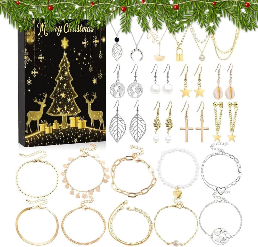 Adventskalender 2024 barn, julpynt adventskalender, smycken adventskalender 2024, 24-dagars nedräkning till julkalender, trendigt smyckeset för vuxna kvinnor