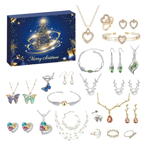 Smycken adventskalender 2024, jul nedräkningskalender 24 dagar | Trendigt smyckesset för vuxna kvinnor och tonårstjejer, 2024 nedräkningskalender