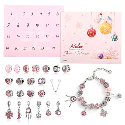 Naler Julkalender 2025, 24 st smycken adventskalender med jul nedräkningskalender presentförpackning för jul födelsedag påsk och alla hjärtans dag (rosa)
