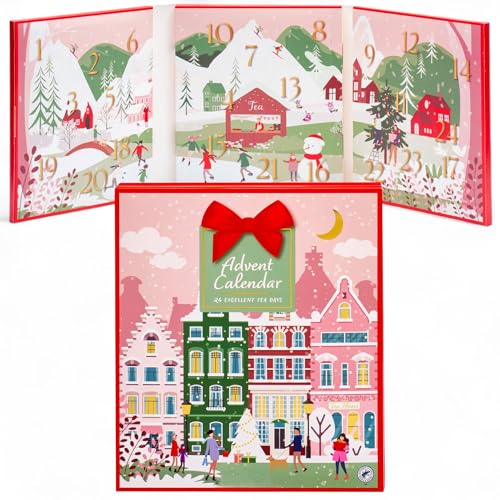 Spetebo Te Adventskalender 2024 - Stor 35 x 24 cm - Olika tesorter för julperioden - Dekorativ adventskalender för julen - Provsätt