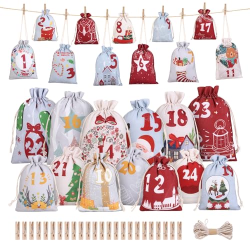 YSWOVUO 24 adventskalender för fyllning av tyg, 2 storlekar av adventskalender påsar