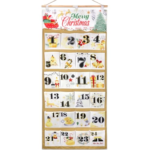 DPKOW adventskalender i tyg med fickor, återanvändbart tyg adventskalender 2024 tomma adventskalendrar att fylla i hängande för vägg hem jul nedräkningskalender dekoration