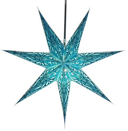 GURU SHOP hopfällbart adventsljus, pappersstjärna, julstjärna 60 cm – devi turkos, stjärna, fönsterdekoration