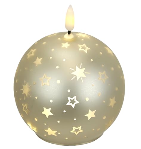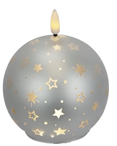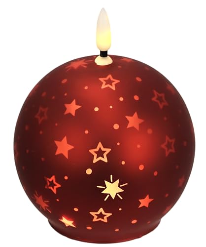 LED-bollljus av glas med stjärnmotiv och timer, 10 cm, LED-ljus, elektriskt, varmvitt, lampor, dekoration, adventsljus, adventskrans, juldekoration, alla hjärtans dag, luktfri, droppfri, flamlös