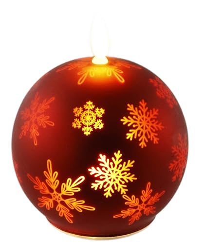 LED-bollljus av glas med snöflingor-motiv och timer, 10 cm, LED-ljus, elektriskt, varmvitt, lampor, dekoration, adventsljus, adventskrans, juldekoration, alla hjärtans dag, luktfri, droppfri, flamlös