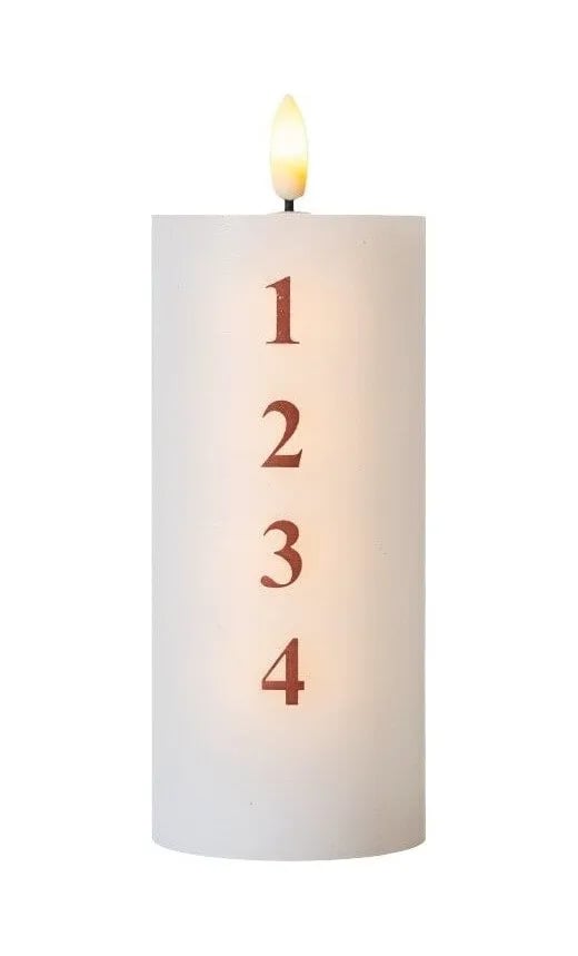 Eva Adventsljus 2025 Ø5cm, Vit med Dekor