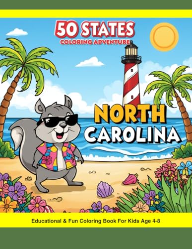 50 States Coloring Adventure: North Carolina Edition: Color and Learn Fun Facts, Landmarks, Animals, and Foods from North Carolina – Educational Coloring Book for Kids Ages 4–8