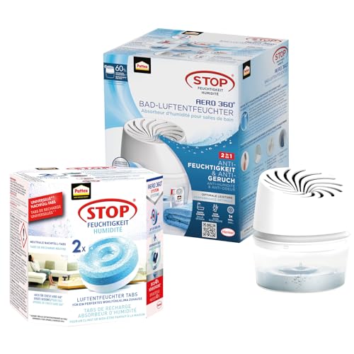 Pattex AERO 360° avfuktare för badrummet och 3 x 450 g påfyllningsflikar, minskar fukt och dålig lukt, enhet inkl. 3 påfyllningsflikar