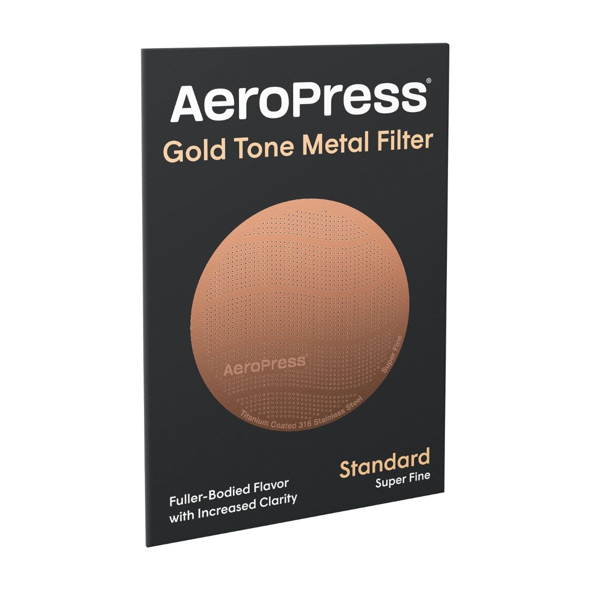 AeroPress Gold Tone Återanvändbart Filter i Rostfritt Stål - Hållbart metallkaffefilter, miljövänligt, resevänligt, passar AeroPress manuella kaffebryggare i standardstorlek