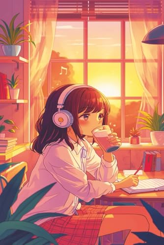 Composition Notebook: Lofi Girl Vinyl Record Store | Aesthetic Golden Hour Anime Style | Wide Ruled 110 Pages | Vintage Turntable & Music Vibes for Students