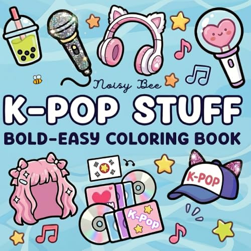 K-Pop Stuff Coloring Book: Bold and Easy Cute Music Themed Pages for Teens, Kids, Adults & K Pop Fans, Inspired by KPop Style and Aesthetic