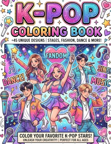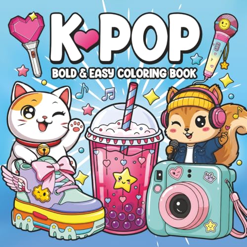 K-Pop Coloring Book: Bold and Easy Coloring for Kpop Fans Featuring Cute K-Pop-Inspired Icons, Music, Fashion & Aesthetic Perfect Gift for Girls, Kids and Teens