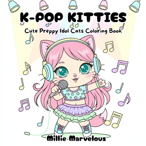 K-POP Kitties Cute Preppy Idol Cats Coloring Book: Bold and Easy Illustrations for Kids and Teens Who Love KPop Featuring Music Themed Girly Aesthetic