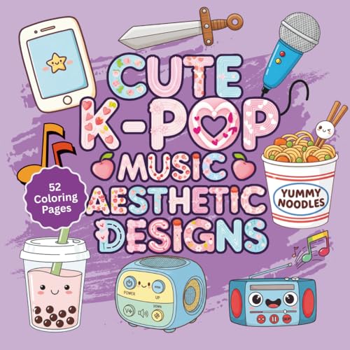 K-Pop Cuties Coloring Book: Bold and Easy Coloring Featuring Cute Food, Music Icons & K-Pop Aesthetic Fun for Kids, Teens and KPop Fans
