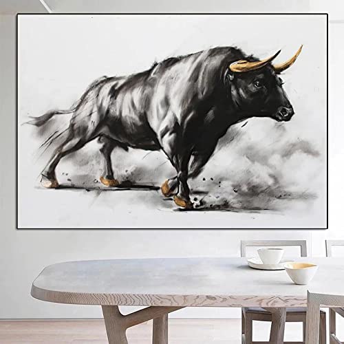 Black Bull Paintings Bullfight Animals Canvas Art Affischer och tryck Svartvitt Väggkonst för barn Rumsdekor 70x100cm ramlös