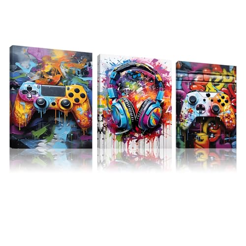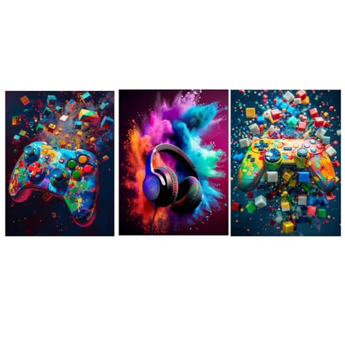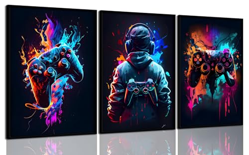 BGFCE 3 st spelrumsdekor neon spel väggkonst affischer speltillbehör tema canvas tryck spelkonsol målning bild för barn ungdomar spel pojkar sovrum tonåring väggdekor inramad 30 cm x 40 cm x 3 cm
