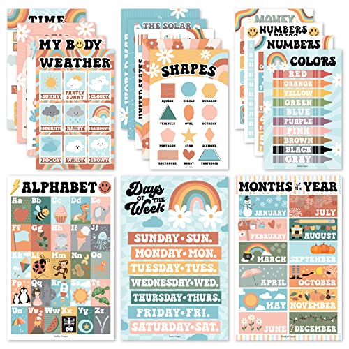16 retro barn pedagogiska affischer för småbarn – före K lärande affischer för småbarn 1-3, förskola hemskolmaterial, alfabetaffisch för småbarn, läraraffischer för klassrumsaffischer..