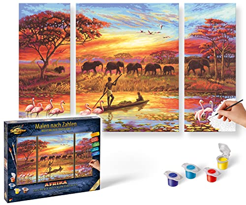Schipper 609260627 måla efter siffror, Afrika, magi av en kontinent – måla bilder för vuxna, inklusive borstar och akrylfärger, triptyk, 50 x 80 cm